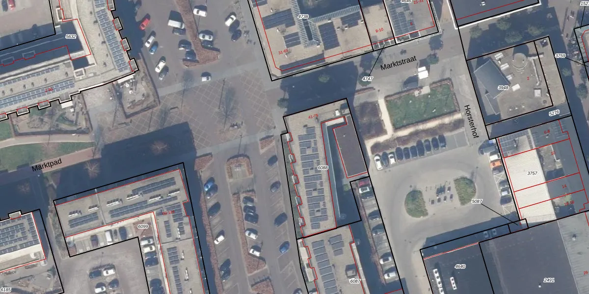 Het perceel waarop Marktstraat 43 staat heeft een oppervlakte van 1010 m². Dit is een zeer groot perceel. De perceeloppervlakte wordt geregistreerd door het Kadaster. Gedetailleerde informatie over de maten van dit perceel kunt u vinden in het rapport Kadastrale kaart met maatvoering van Marktstraat 43.