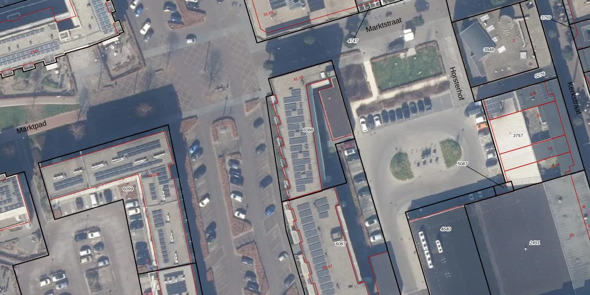 Het perceel waarop Marktstraat 59 staat heeft een oppervlakte van 1010 m². Dit is een zeer groot perceel. De perceeloppervlakte wordt geregistreerd door het Kadaster. Gedetailleerde informatie over de maten van dit perceel kunt u vinden in het rapport Kadastrale kaart met maatvoering van Marktstraat 59.