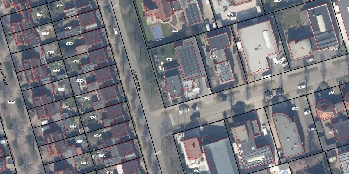 Het perceel waarop Marsweg 1 staat heeft een oppervlakte van 998 m². Dit is een groot perceel. De perceeloppervlakte wordt geregistreerd door het Kadaster. Gedetailleerde informatie over de maten van dit perceel kunt u vinden in het rapport Kadastrale kaart met maatvoering van Marsweg 1.