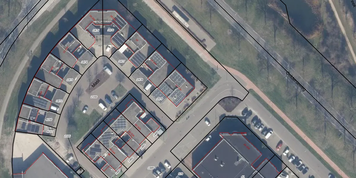 Het perceel waarop Mast 12 staat heeft een oppervlakte van 553 m². Dit is een groot perceel. De perceeloppervlakte wordt geregistreerd door het Kadaster. Gedetailleerde informatie over de maten van dit perceel kunt u vinden in het rapport Kadastrale kaart met maatvoering van Mast 12.