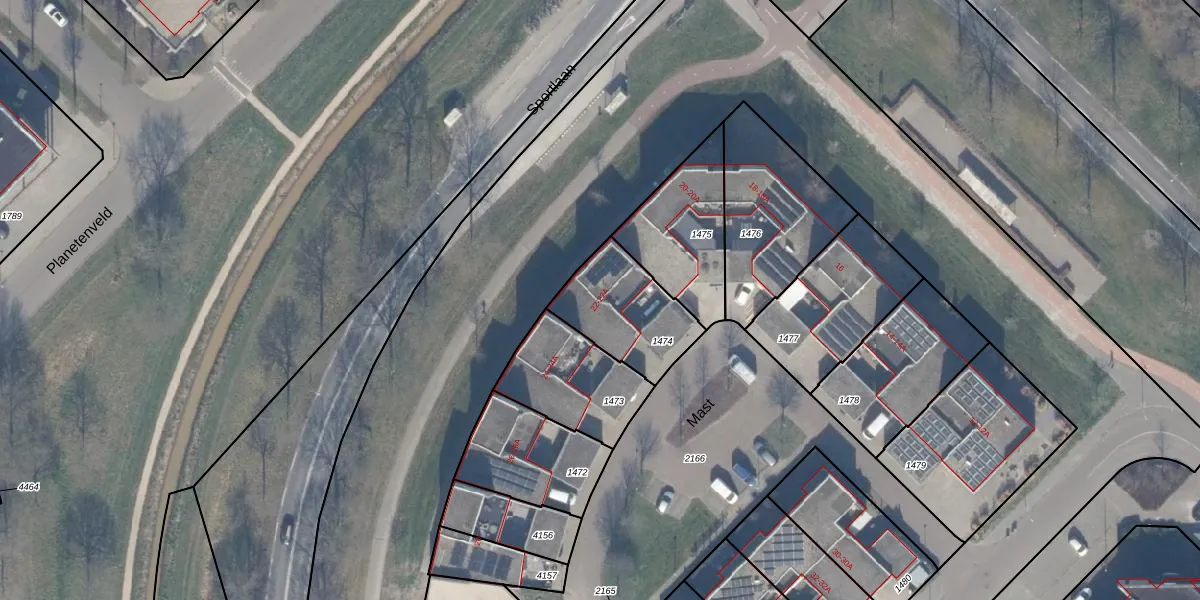 Het perceel waarop Mast 22 staat heeft een oppervlakte van 323 m². Dit is een groot perceel. De perceeloppervlakte wordt geregistreerd door het Kadaster. Gedetailleerde informatie over de maten van dit perceel kunt u vinden in het rapport Kadastrale kaart met maatvoering van Mast 22.