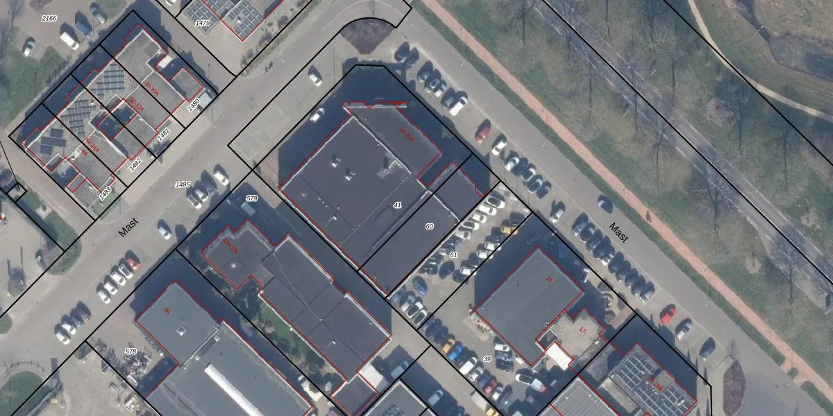 Het perceel waarop Mast 25 staat heeft een oppervlakte van 1387 m². Dit is een zeer groot perceel. De perceeloppervlakte wordt geregistreerd door het Kadaster. Gedetailleerde informatie over de maten van dit perceel kunt u vinden in het rapport Kadastrale kaart met maatvoering van Mast 25.