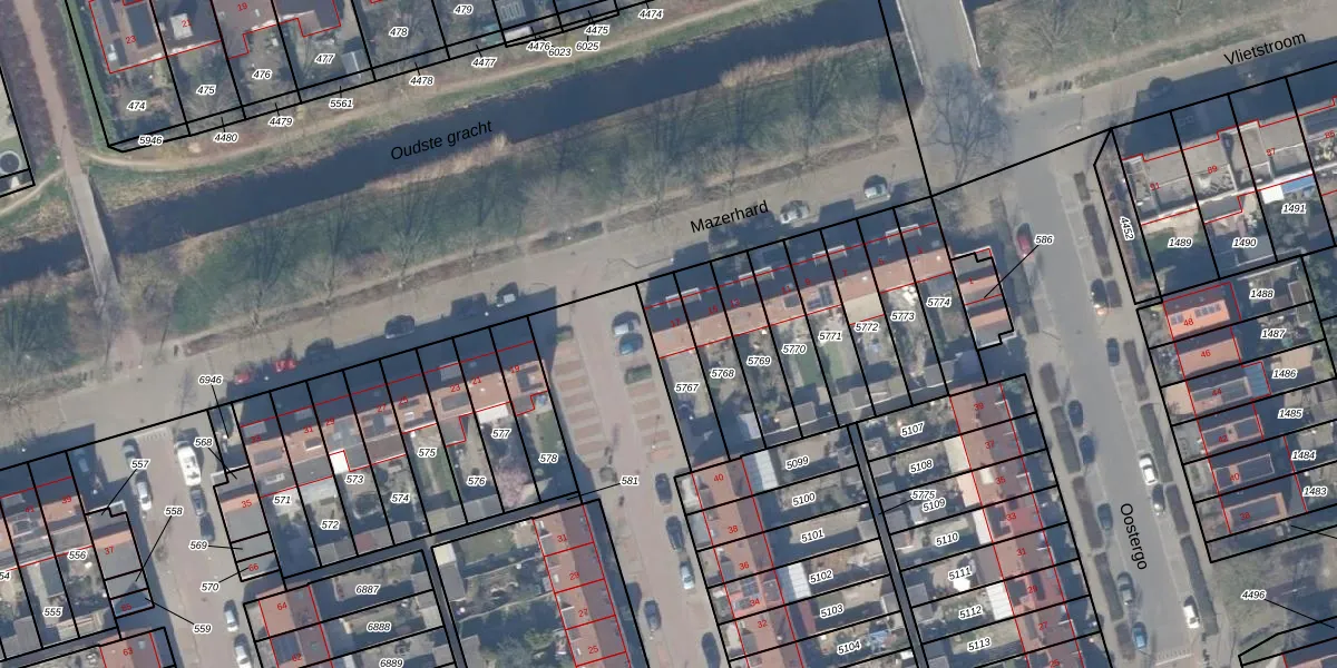 Gebruik de zoekbalk of klik op een perceel voor informatie over de adressen binnen dit perceel.
