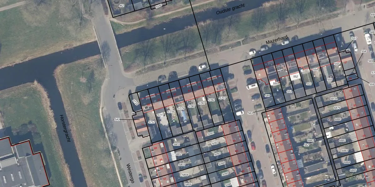 Het perceel waarop Mazerhard 61 staat heeft een oppervlakte van 166 m². Dit is een middelgroot perceel. De perceeloppervlakte wordt geregistreerd door het Kadaster. Gedetailleerde informatie over de maten van dit perceel kunt u vinden in het rapport Kadastrale kaart met maatvoering van Mazerhard 61.