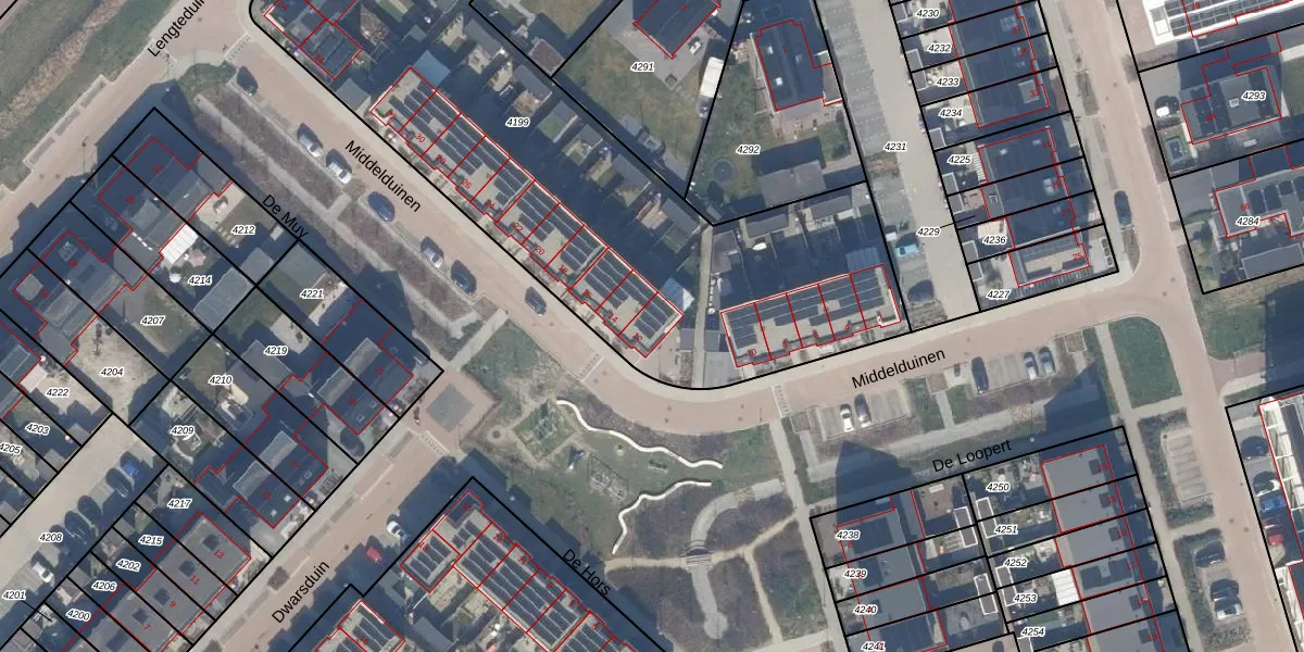 Middelduinen 12 is gelegen op kadastraal perceel ZWD03E4199. Deze kadastrale aanduiding is uniek en wordt gebruikt door het Kadaster om eigendomsrechten en andere zakelijke rechten vast te leggen. Het perceel maakt onderdeel uit van de kadastrale gemeente Zeewolde.