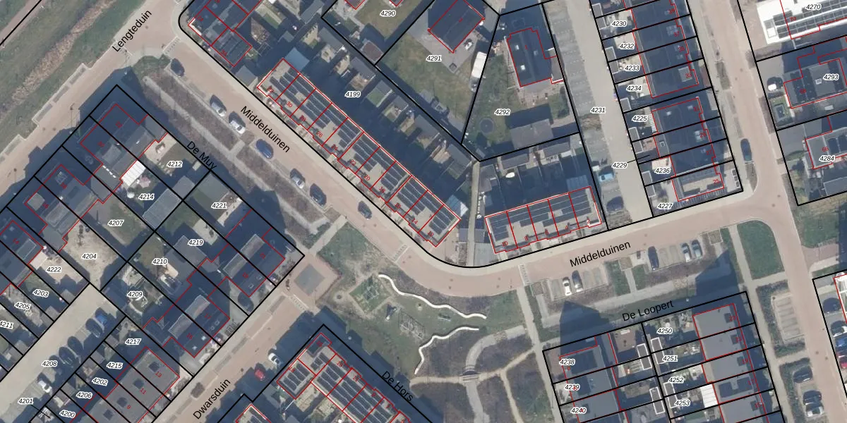 Het perceel waarop Middelduinen 14 staat heeft een oppervlakte van 3330 m². Dit is een zeer groot perceel. De perceeloppervlakte wordt geregistreerd door het Kadaster. Gedetailleerde informatie over de maten van dit perceel kunt u vinden in het rapport Kadastrale kaart met maatvoering van Middelduinen 14.
