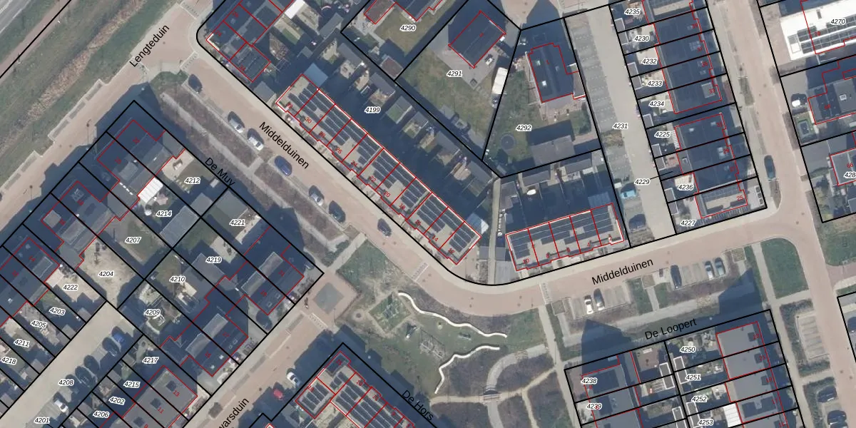 Middelduinen 16 is gelegen op kadastraal perceel ZWD03E4199. Deze kadastrale aanduiding is uniek en wordt gebruikt door het Kadaster om eigendomsrechten en andere zakelijke rechten vast te leggen. Het perceel maakt onderdeel uit van de kadastrale gemeente Zeewolde.