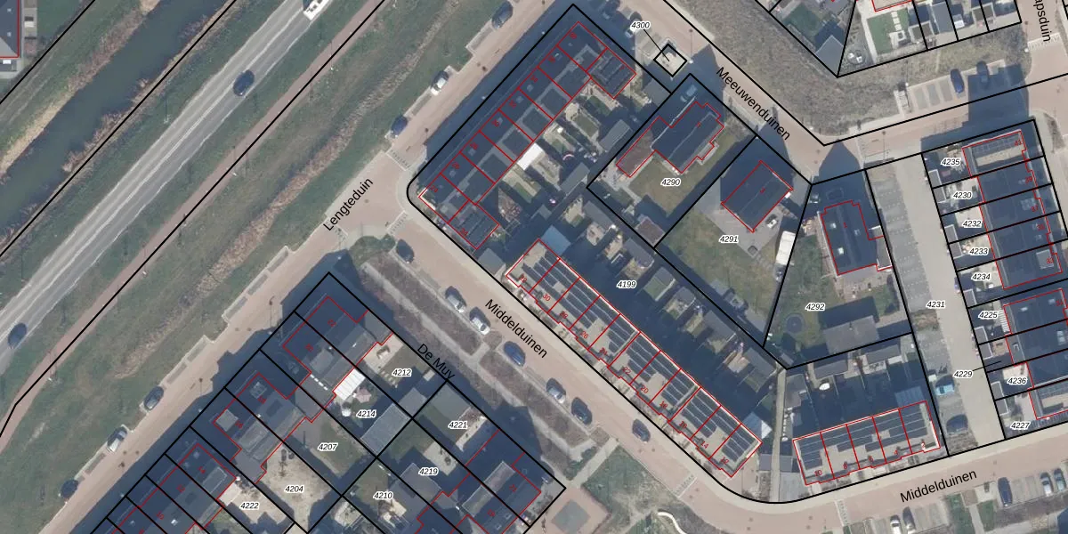 Middelduinen 32 is gelegen op kadastraal perceel ZWD03E4199. Deze kadastrale aanduiding is uniek en wordt gebruikt door het Kadaster om eigendomsrechten en andere zakelijke rechten vast te leggen. Het perceel maakt onderdeel uit van de kadastrale gemeente Zeewolde.
