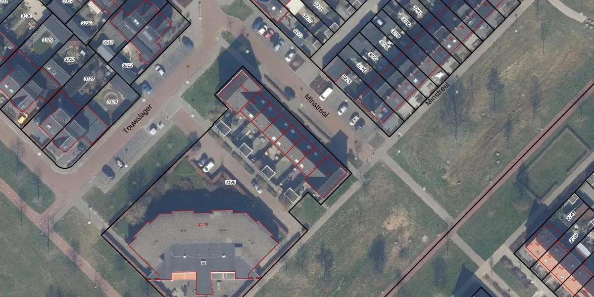 Het perceel waarop Minstreel 10 staat heeft een oppervlakte van 3512 m². Dit is een zeer groot perceel. De perceeloppervlakte wordt geregistreerd door het Kadaster. Gedetailleerde informatie over de maten van dit perceel kunt u vinden in het rapport Kadastrale kaart met maatvoering van Minstreel 10.