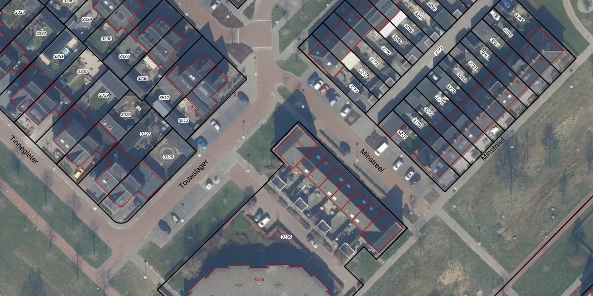 Het perceel waarop Minstreel 20 staat heeft een oppervlakte van 3512 m². Dit is een zeer groot perceel. De perceeloppervlakte wordt geregistreerd door het Kadaster. Gedetailleerde informatie over de maten van dit perceel kunt u vinden in het rapport Kadastrale kaart met maatvoering van Minstreel 20.