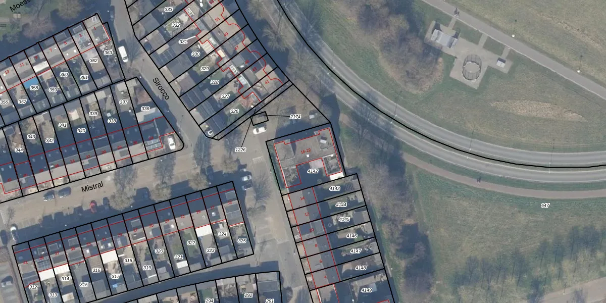 Het perceel waarop Mistral 20 staat heeft een oppervlakte van 414 m². Dit is een groot perceel. De perceeloppervlakte wordt geregistreerd door het Kadaster. Gedetailleerde informatie over de maten van dit perceel kunt u vinden in het rapport Kadastrale kaart met maatvoering van Mistral 20.