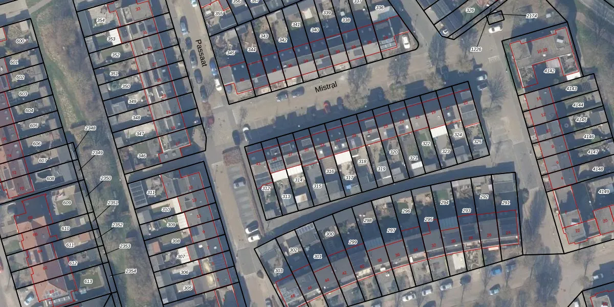 Gebruik de zoekbalk of klik op een perceel voor informatie over de adressen binnen dit perceel.