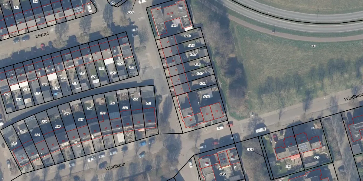 Het perceel waarop Mistral 4 staat heeft een oppervlakte van 143 m². Dit is een middelgroot perceel. De perceeloppervlakte wordt geregistreerd door het Kadaster. Gedetailleerde informatie over de maten van dit perceel kunt u vinden in het rapport Kadastrale kaart met maatvoering van Mistral 4.