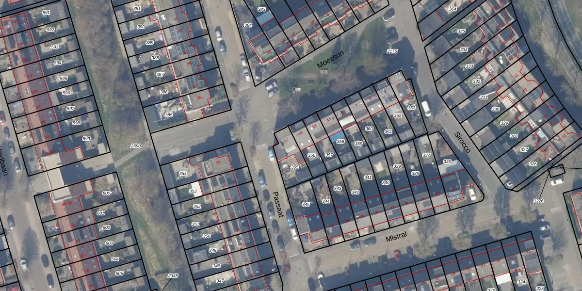 Gebruik de zoekbalk of klik op een perceel voor informatie over de adressen binnen dit perceel.