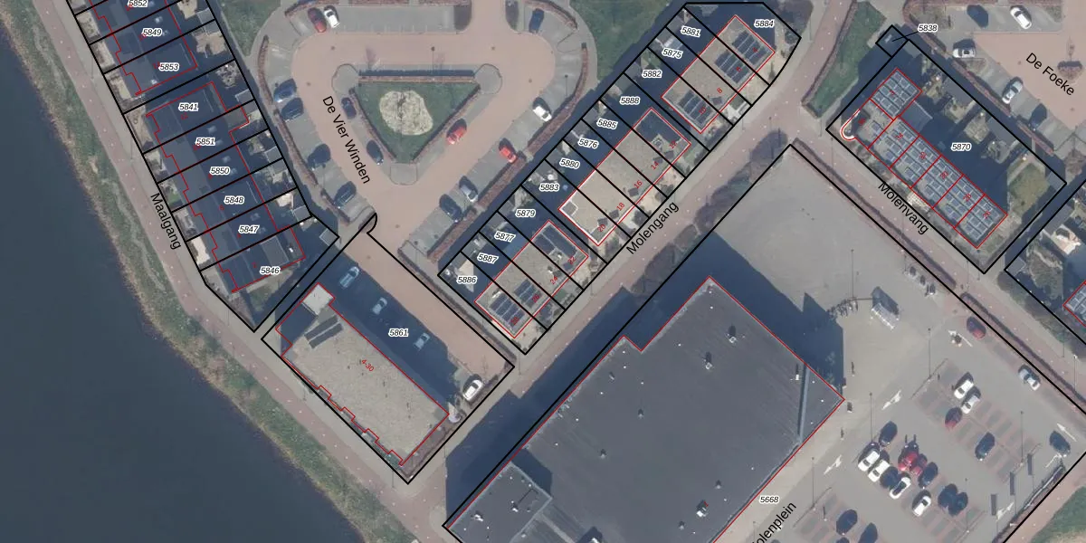 Molengang 24 is gelegen op kadastraal perceel ZWD03A5877. Deze kadastrale aanduiding is uniek en wordt gebruikt door het Kadaster om eigendomsrechten en andere zakelijke rechten vast te leggen. Het perceel maakt onderdeel uit van de kadastrale gemeente Zeewolde.