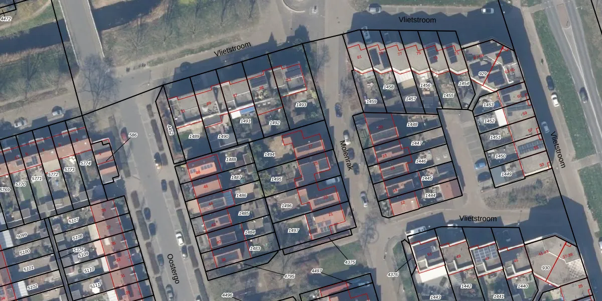 Het perceel waarop Molenrak 27 staat heeft een oppervlakte van 267 m². Dit is een middelgroot perceel. De perceeloppervlakte wordt geregistreerd door het Kadaster. Gedetailleerde informatie over de maten van dit perceel kunt u vinden in het rapport Kadastrale kaart met maatvoering van Molenrak 27.