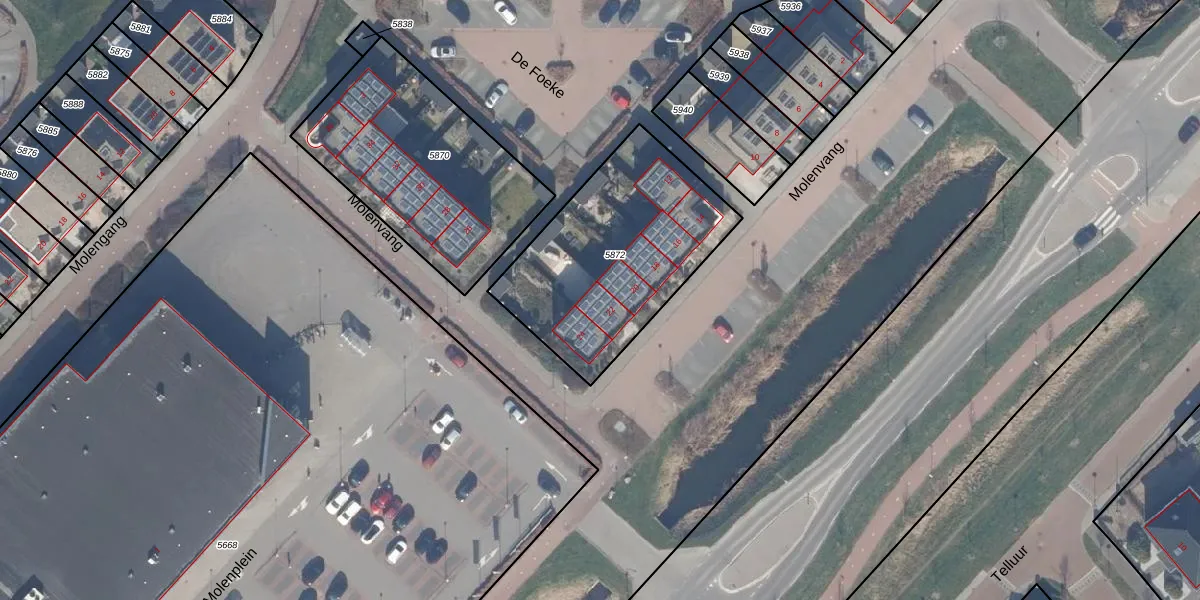 Het perceel waarop Molenvang 22 staat heeft een oppervlakte van 881 m². Dit is een groot perceel. De perceeloppervlakte wordt geregistreerd door het Kadaster. Gedetailleerde informatie over de maten van dit perceel kunt u vinden in het rapport Kadastrale kaart met maatvoering van Molenvang 22.
