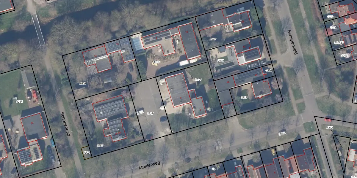 Het perceel waarop Muiderweg 4 staat heeft een oppervlakte van 1020 m². Dit is een zeer groot perceel. De perceeloppervlakte wordt geregistreerd door het Kadaster. Gedetailleerde informatie over de maten van dit perceel kunt u vinden in het rapport Kadastrale kaart met maatvoering van Muiderweg 4.
