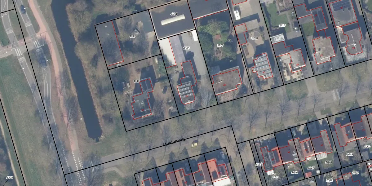 Het perceel waarop Muiderweg 50 staat heeft een oppervlakte van 906 m². Dit is een groot perceel. De perceeloppervlakte wordt geregistreerd door het Kadaster. Gedetailleerde informatie over de maten van dit perceel kunt u vinden in het rapport Kadastrale kaart met maatvoering van Muiderweg 50.