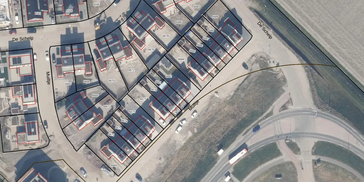 Het adres is gelegen op perceel 6682 in de sectie A en de kadastrale gemeente Zeewolde. De kadastrale aanduiding is aldus ZWD03-A-6682. De gemiddelde perceelgrootte in Zeewolde is 1,9 ha. Dit perceel is kleiner: de perceeloppervlakte bedraagt 279 m². Het grootste perceel in de kadastrale gemeente is 6,16 km². Het kleinste perceel heeft een oppervlakte van 0 m². Op het perceel bevinden zich geen andere adressen. In de Basisregistratie Kadaster (BRK) werden de grenzen van het perceel geregistreerd op 22-10-2025.