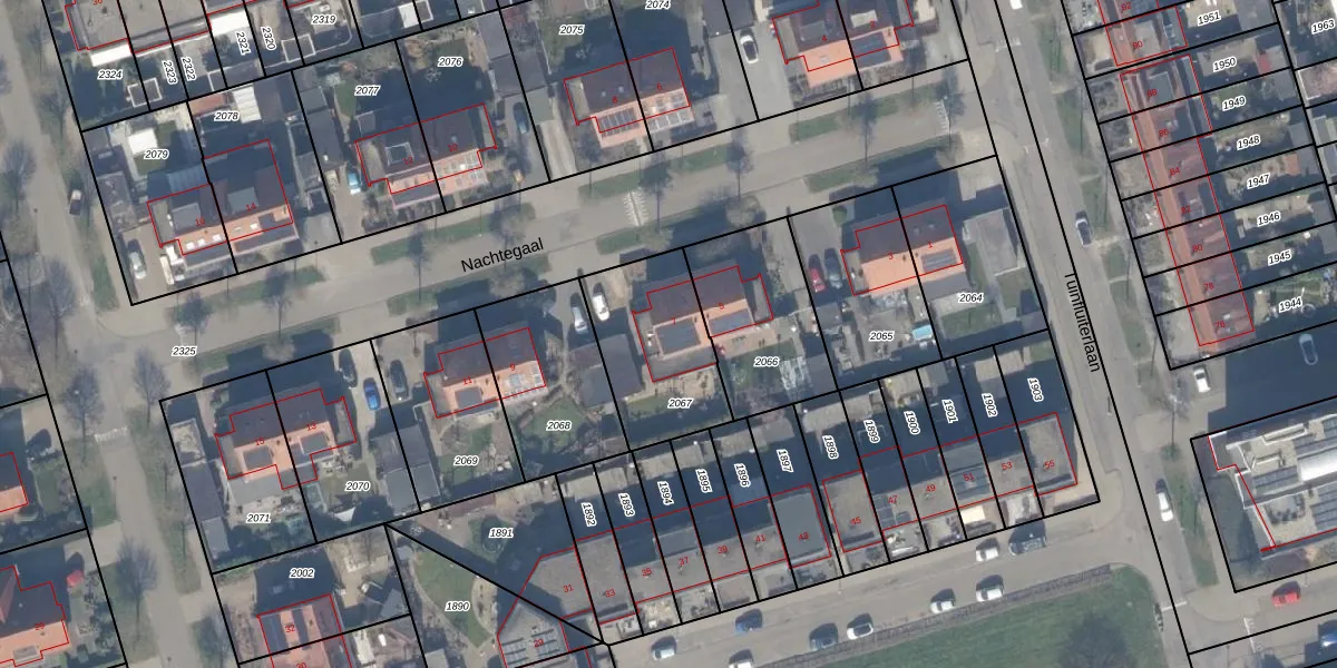 Gebruik de zoekbalk of klik op een perceel voor informatie over de adressen binnen dit perceel.