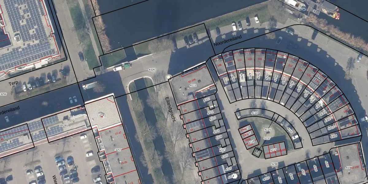 Het perceel waarop Noordereiland 102 staat heeft een oppervlakte van 374 m². Dit is een groot perceel. De perceeloppervlakte wordt geregistreerd door het Kadaster. Gedetailleerde informatie over de maten van dit perceel kunt u vinden in het rapport Kadastrale kaart met maatvoering van Noordereiland 102.