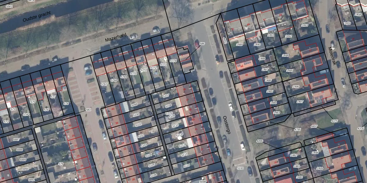 Het perceel waarop Oostergo 39 staat heeft een oppervlakte van 158 m². Dit is een middelgroot perceel. De perceeloppervlakte wordt geregistreerd door het Kadaster. Gedetailleerde informatie over de maten van dit perceel kunt u vinden in het rapport Kadastrale kaart met maatvoering van Oostergo 39.