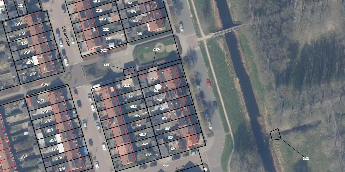 Gebruik de zoekbalk of klik op een perceel voor informatie over de adressen binnen dit perceel.