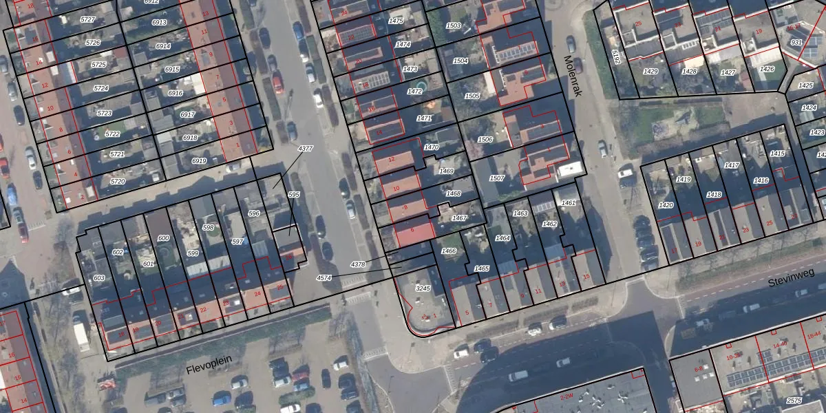 Het perceel waarop het adres ligt is ZWD03-A-1468. De afkorting 'ZWD03' staat voor kadastrale gemeente Zeewolde. Het perceel is kleiner dan gemiddeld in Zeewolde. Het perceel is 155 m² groot, terwijl het gemiddelde ligt op 1,9 ha. De grootste perceeloppervlakte in de kadastrale gemeente is 6,16 km². De kleinste oppervlakte bedraagt 0 m². Dit is het enige adres dat aanwezig is op het perceel. De laatste wijziging in het de Basisregistratie Kadaster (BRK) was op 08-02-2007.