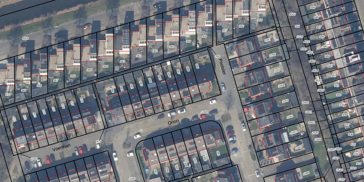 Gebruik de zoekbalk of klik op een perceel voor informatie over de adressen binnen dit perceel.