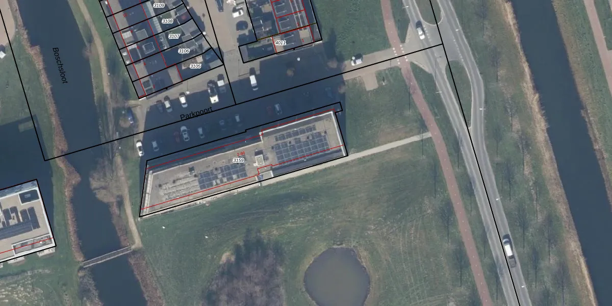 Het perceel waarop Parkpoort 14 staat heeft een oppervlakte van 1162 m². Dit is een zeer groot perceel. De perceeloppervlakte wordt geregistreerd door het Kadaster. Gedetailleerde informatie over de maten van dit perceel kunt u vinden in het rapport Kadastrale kaart met maatvoering van Parkpoort 14.