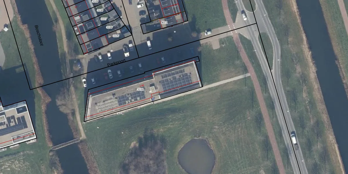 Het perceel waarop Parkpoort 30 staat heeft een oppervlakte van 1162 m². Dit is een zeer groot perceel. De perceeloppervlakte wordt geregistreerd door het Kadaster. Gedetailleerde informatie over de maten van dit perceel kunt u vinden in het rapport Kadastrale kaart met maatvoering van Parkpoort 30.