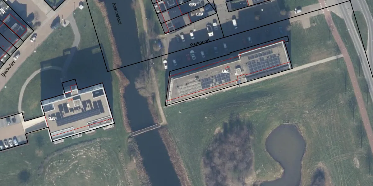 Het perceel waarop Parkpoort 4 staat heeft een oppervlakte van 1162 m². Dit is een zeer groot perceel. De perceeloppervlakte wordt geregistreerd door het Kadaster. Gedetailleerde informatie over de maten van dit perceel kunt u vinden in het rapport Kadastrale kaart met maatvoering van Parkpoort 4.