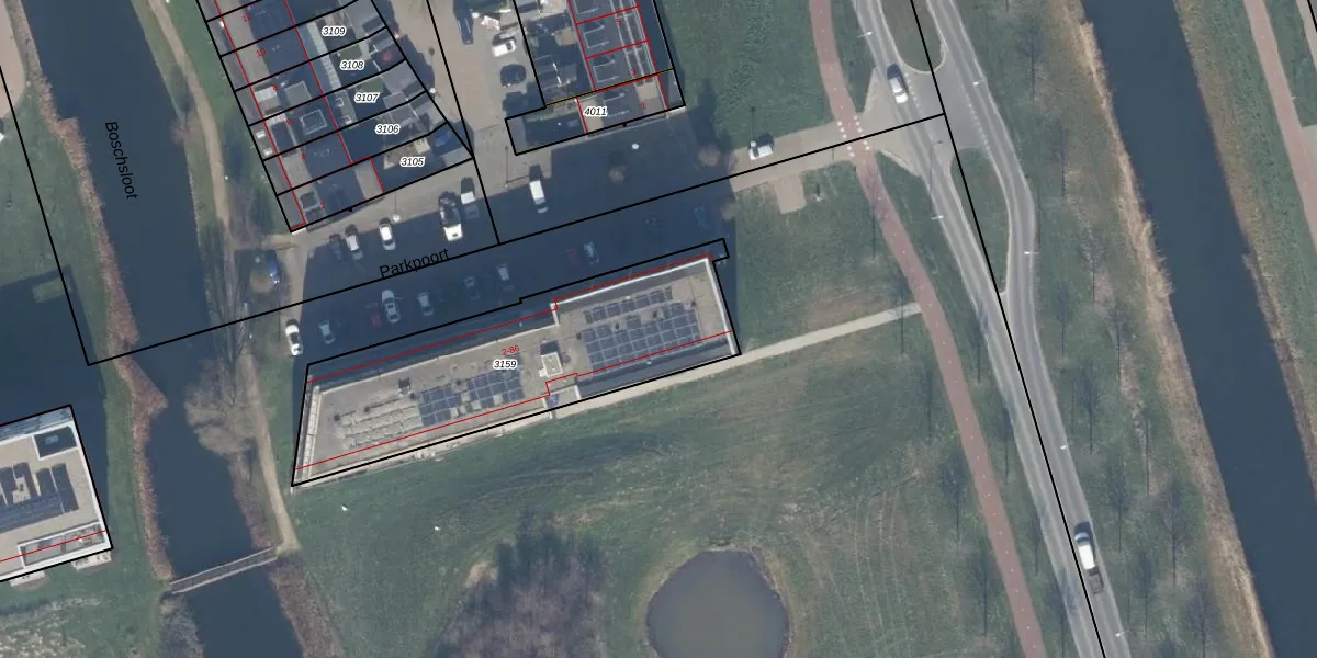 Het perceel waarop Parkpoort 50 staat heeft een oppervlakte van 1162 m². Dit is een zeer groot perceel. De perceeloppervlakte wordt geregistreerd door het Kadaster. Gedetailleerde informatie over de maten van dit perceel kunt u vinden in het rapport Kadastrale kaart met maatvoering van Parkpoort 50.