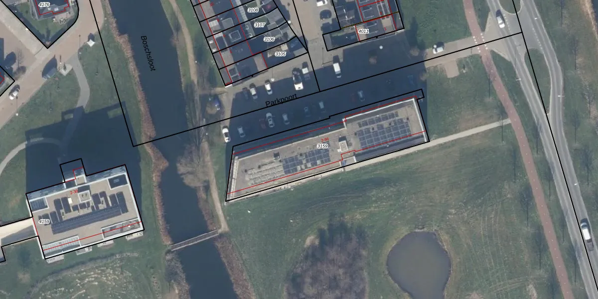 Het perceel waarop Parkpoort 60 staat heeft een oppervlakte van 1162 m². Dit is een zeer groot perceel. De perceeloppervlakte wordt geregistreerd door het Kadaster. Gedetailleerde informatie over de maten van dit perceel kunt u vinden in het rapport Kadastrale kaart met maatvoering van Parkpoort 60.