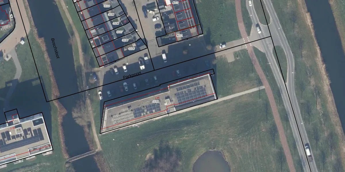 Het perceel waarop Parkpoort 80 staat heeft een oppervlakte van 1162 m². Dit is een zeer groot perceel. De perceeloppervlakte wordt geregistreerd door het Kadaster. Gedetailleerde informatie over de maten van dit perceel kunt u vinden in het rapport Kadastrale kaart met maatvoering van Parkpoort 80.