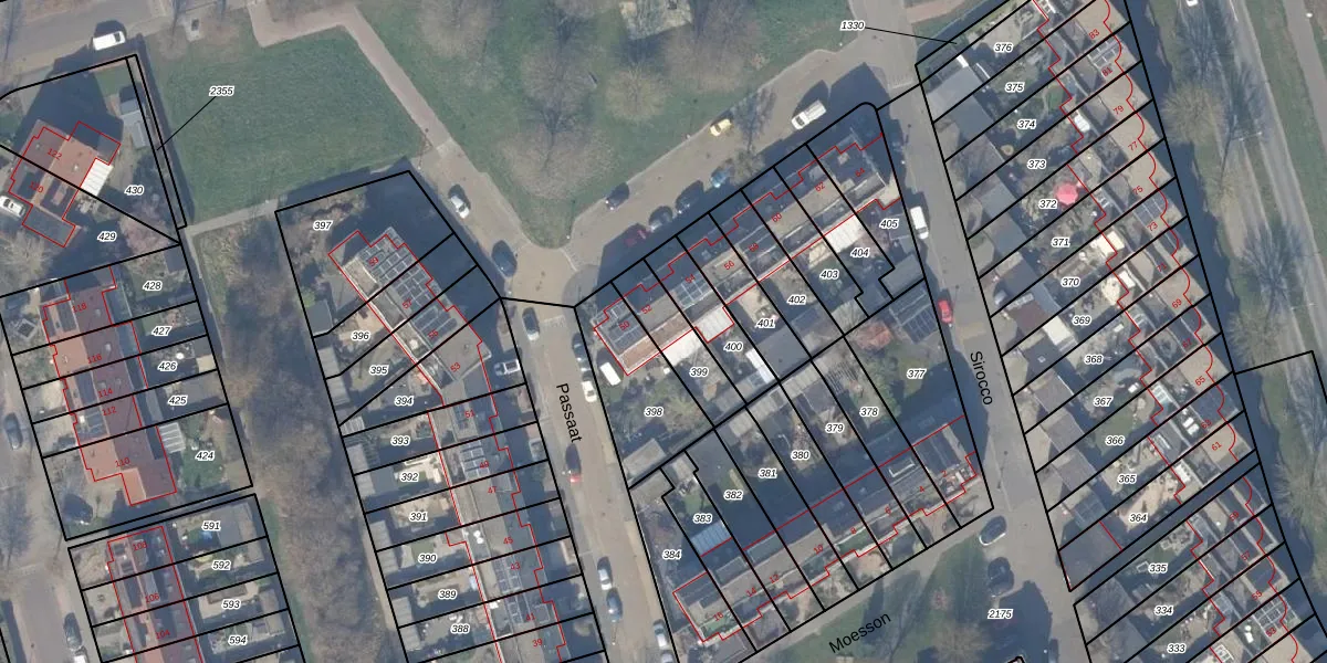 Gebruik de zoekbalk of klik op een perceel voor informatie over de adressen binnen dit perceel.