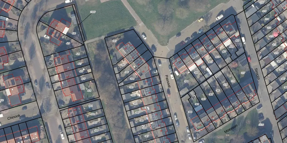 Gebruik de zoekbalk of klik op een perceel voor informatie over de adressen binnen dit perceel.