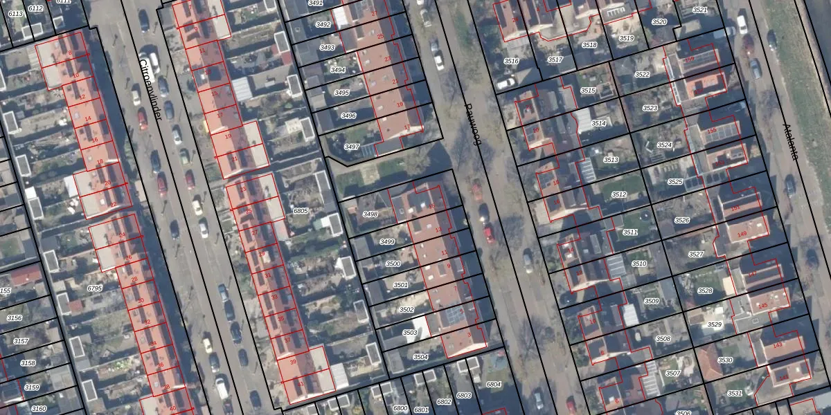 Gebruik de zoekbalk of klik op een perceel voor informatie over de adressen binnen dit perceel.