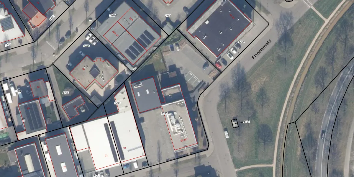 Het perceel waarop Planetenveld 35-A staat heeft een oppervlakte van 2554 m². Dit is een zeer groot perceel. De perceeloppervlakte wordt geregistreerd door het Kadaster. Gedetailleerde informatie over de maten van dit perceel kunt u vinden in het rapport Kadastrale kaart met maatvoering van Planetenveld 35-A.