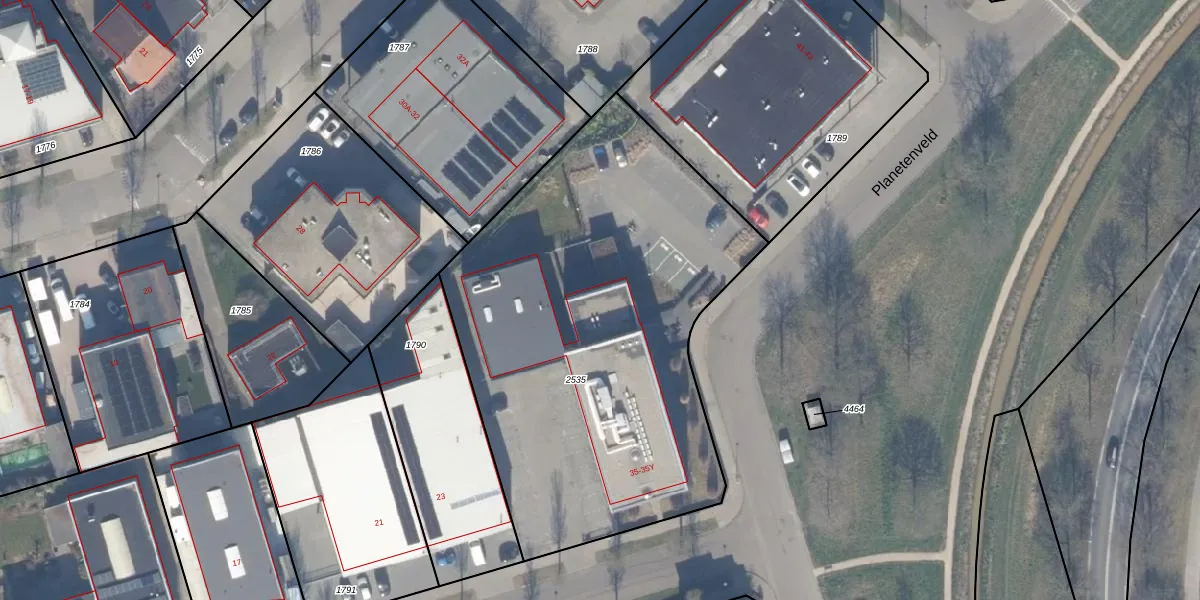 Het perceel waarop Planetenveld 35-K staat heeft een oppervlakte van 2554 m². Dit is een zeer groot perceel. De perceeloppervlakte wordt geregistreerd door het Kadaster. Gedetailleerde informatie over de maten van dit perceel kunt u vinden in het rapport Kadastrale kaart met maatvoering van Planetenveld 35-K.