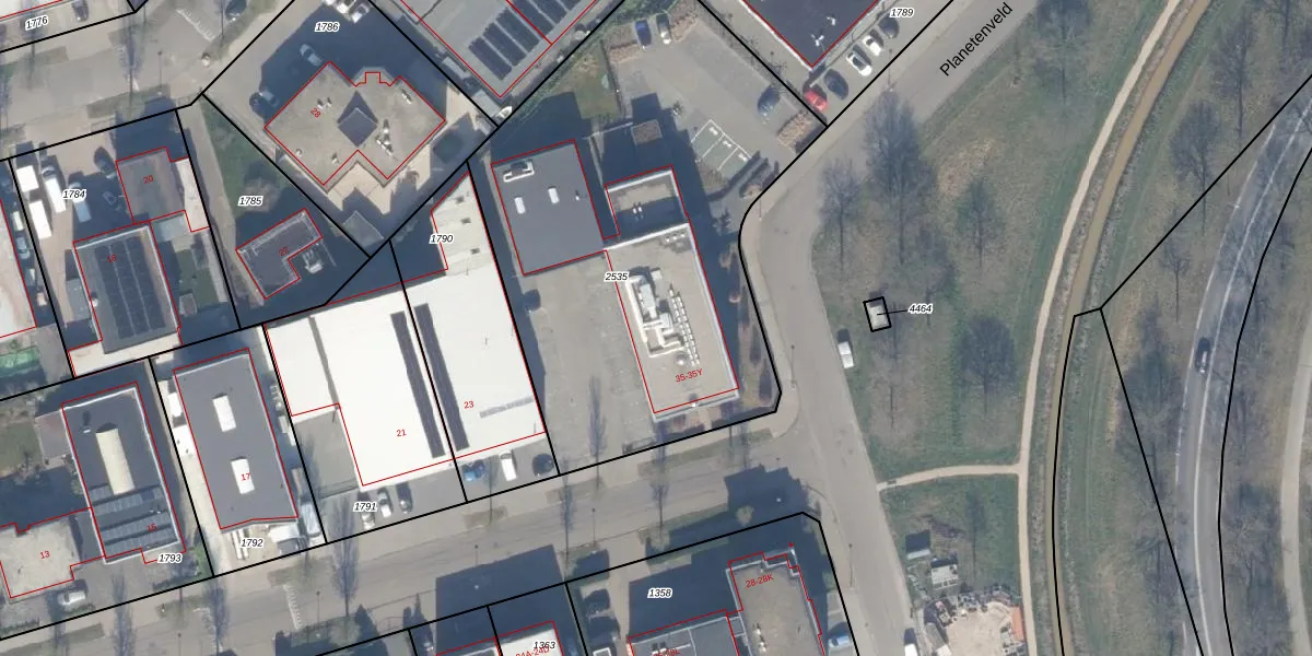 Het perceel waarop Planetenveld 35-R staat heeft een oppervlakte van 2554 m². Dit is een zeer groot perceel. De perceeloppervlakte wordt geregistreerd door het Kadaster. Gedetailleerde informatie over de maten van dit perceel kunt u vinden in het rapport Kadastrale kaart met maatvoering van Planetenveld 35-R.