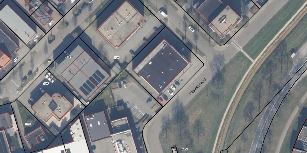 Het perceel waarop Planetenveld 41 staat heeft een oppervlakte van 1385 m². Dit is een zeer groot perceel. De perceeloppervlakte wordt geregistreerd door het Kadaster. Gedetailleerde informatie over de maten van dit perceel kunt u vinden in het rapport Kadastrale kaart met maatvoering van Planetenveld 41.