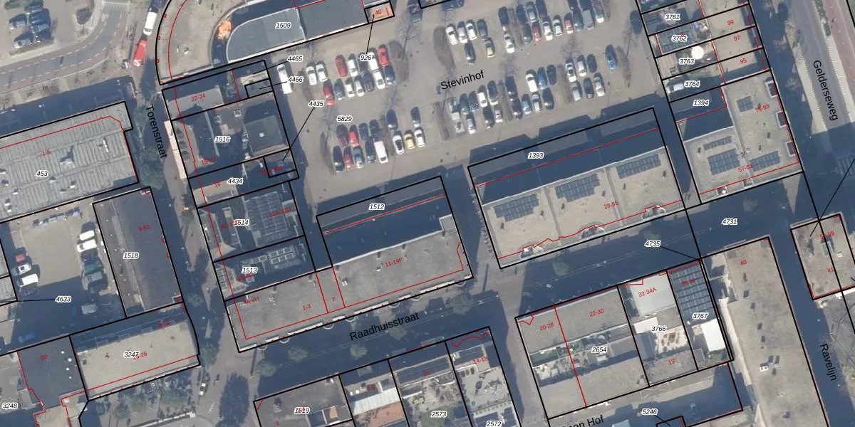 Raadhuisstraat 19-F is gelegen op kadastraal perceel ZWD03A1512. Deze kadastrale aanduiding is uniek en wordt gebruikt door het Kadaster om eigendomsrechten en andere zakelijke rechten vast te leggen. Het perceel maakt onderdeel uit van de kadastrale gemeente Zeewolde.