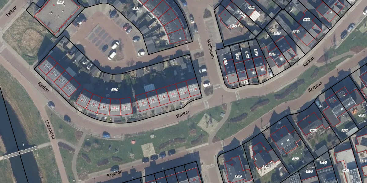 Radon 27 is gelegen op kadastraal perceel ZWD03E3594. Deze kadastrale aanduiding is uniek en wordt gebruikt door het Kadaster om eigendomsrechten en andere zakelijke rechten vast te leggen. Het perceel maakt onderdeel uit van de kadastrale gemeente Zeewolde.