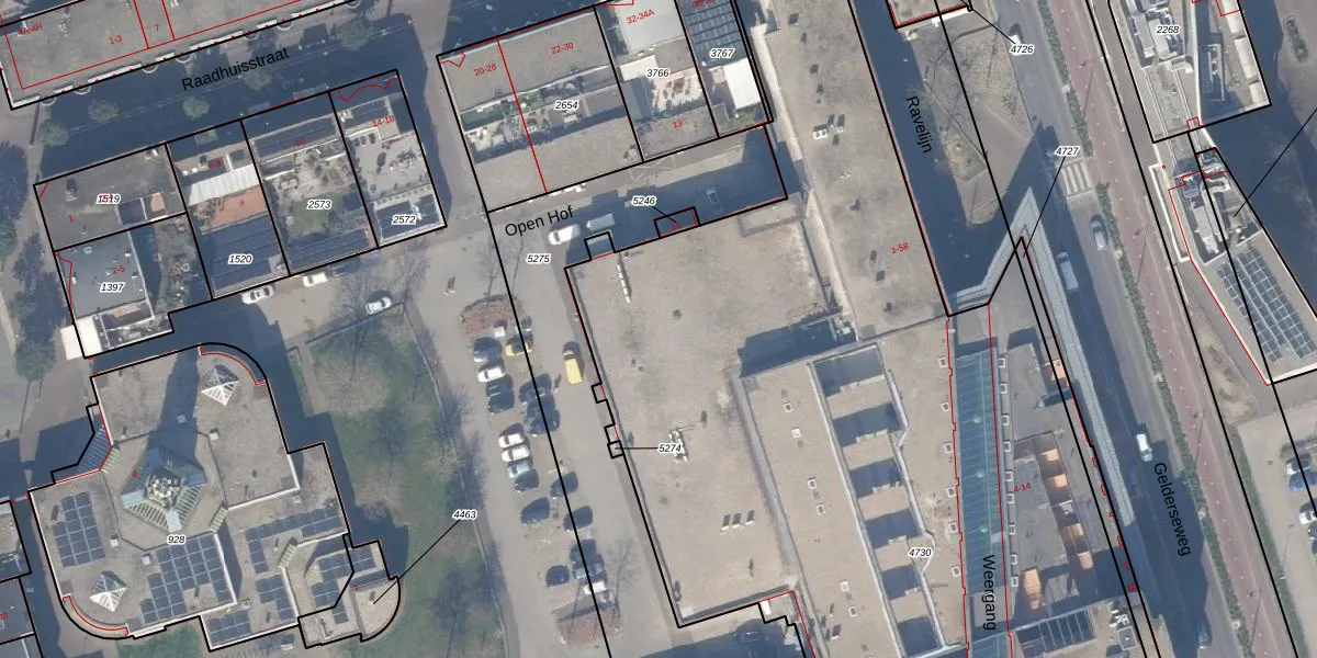 Het perceel waarop Ravelijn 15 staat heeft een oppervlakte van 6043 m². Dit is een zeer groot perceel. De perceeloppervlakte wordt geregistreerd door het Kadaster. Gedetailleerde informatie over de maten van dit perceel kunt u vinden in het rapport Kadastrale kaart met maatvoering van Ravelijn 15.