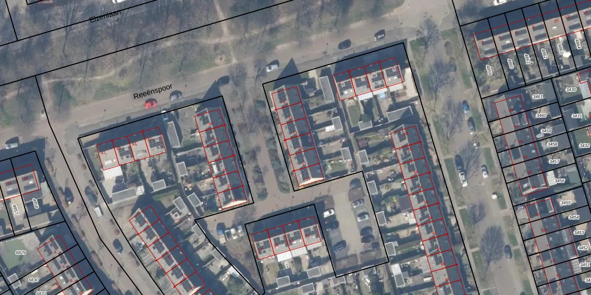 Het perceel waarop Reeënspoor 15 staat heeft een oppervlakte van 8499 m². Dit is een zeer groot perceel. De perceeloppervlakte wordt geregistreerd door het Kadaster. Gedetailleerde informatie over de maten van dit perceel kunt u vinden in het rapport Kadastrale kaart met maatvoering van Reeënspoor 15.