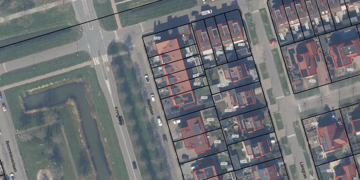 Gebruik de zoekbalk of klik op een perceel voor informatie over de adressen binnen dit perceel.