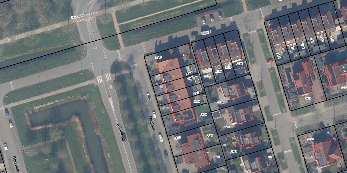 Gebruik de zoekbalk of klik op een perceel voor informatie over de adressen binnen dit perceel.