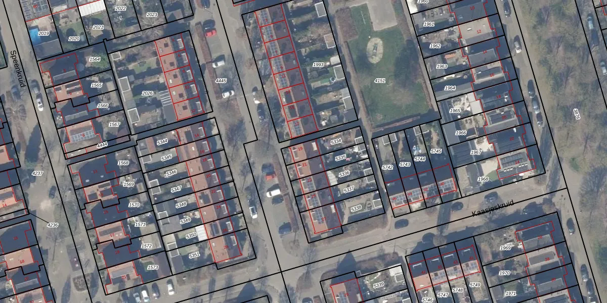 Het adres ligt op het perceel ZWD03-A-5334, dat zich in de kadastrale gemeente Zeewolde bevindt. De gemiddelde perceelgrootte in Zeewolde is 1,9 ha. Dit perceel is kleiner: de perceeloppervlakte bedraagt 154 m². Het grootste perceel in de kadastrale gemeente is 6,16 km². Het kleinste perceel heeft een oppervlakte van 0 m². Dit is het enige adres dat aanwezig is op het perceel. In de Basisregistratie Kadaster (BRK) werden de grenzen van het perceel geregistreerd op 23-11-2009.